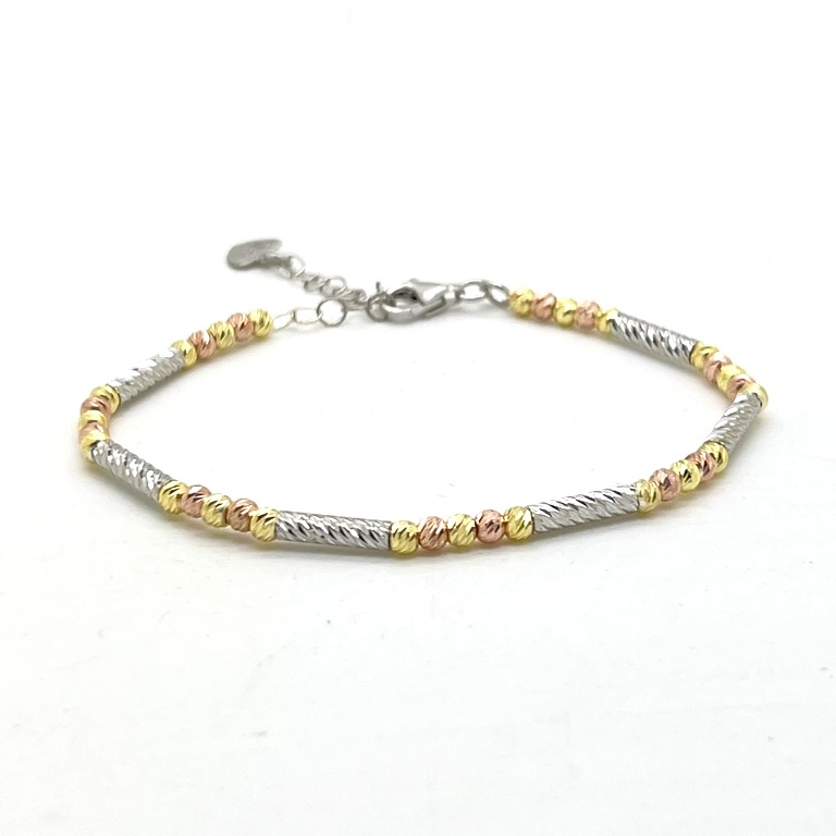 Bratara BrooksTip: Dama.Model elastic.Materiale folosite :  -Argint 925 placat cu aur 14K.Dimensiune bile : 4 mm.Poate fi purtata la incheieturi cu circumferinta intre 16 si 19 cm.Garantie: Da.Recomandare: purtata cu alte bratari sau langa un ceas.Bratara vine insotita de cutie."Be different!"