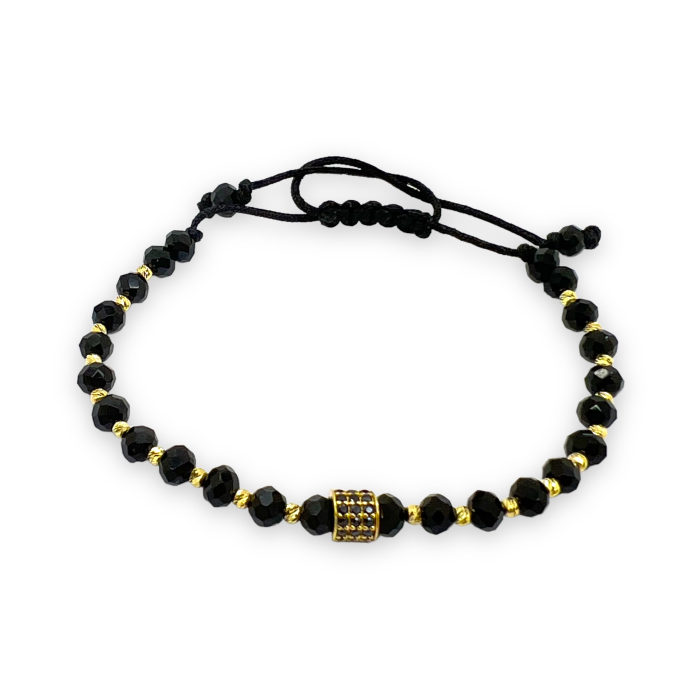 Bratara BrooksTip: Unisex.Materiale folosite : -bilute aur 14K -Pietre -Snur textil rezistent.Dimensiune bile : 4 mm.Poate fi purtata la incheieturi cu circumferinta intre 14 si 25 cm.Garantie: Da.Recomandare: purtata cu alte bratari sau langa un ceas.Bratara vine insotita de cutie."Be different!"