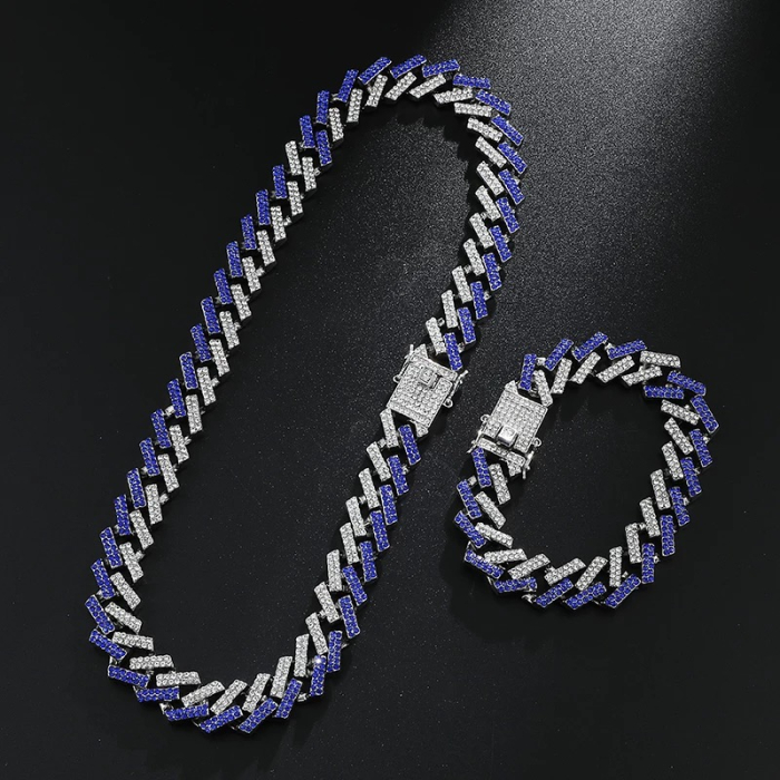 Lant Cuban cu latime de 12 mm.Tip:Dama.Materiale folosite lant: -Aliaj cupru cu otel -Cristale de zirconiu.Lungime lant: 40 cm.(la baza gatului)Latime lant: 12 mmLungime bratara: 17,5 cm.Constructia zalelor este una ergonomica pentru gat.Lantul vine insotit de cutie Premium Brooks.