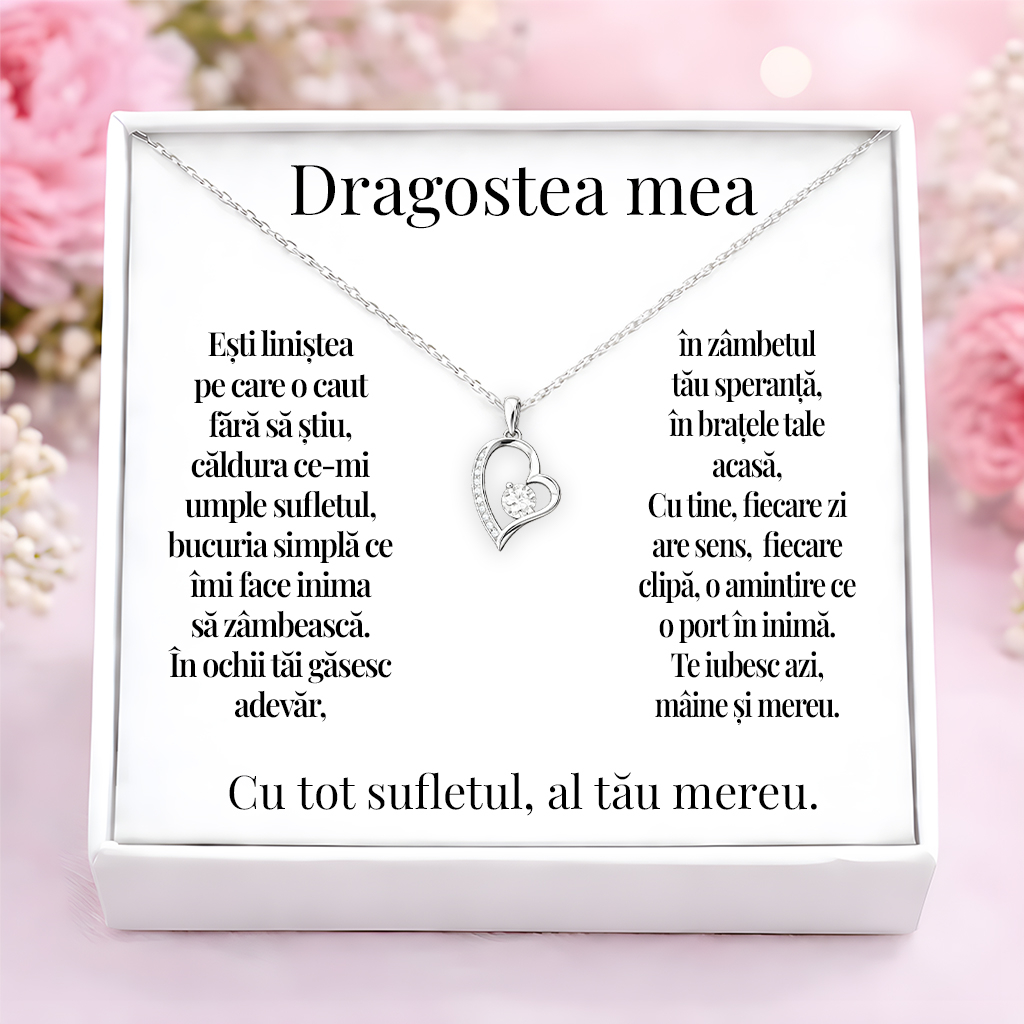 Un simbol al iubirii care nu se demodează. Acest colier, completat de un mesaj din inimă, creează un moment special și o amintire de durată.