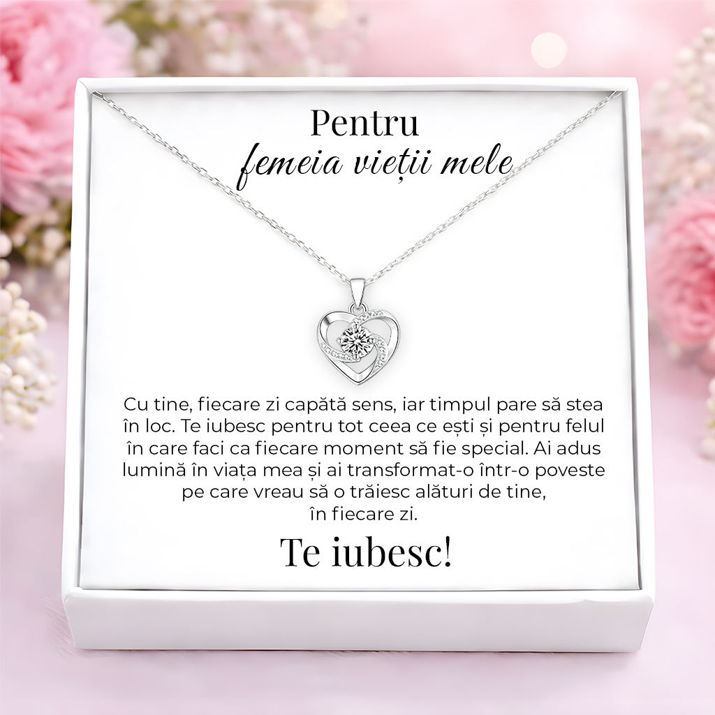Un simbol al iubirii care nu se demodează. Acest colier, completat de un mesaj din inimă, creează un moment special și o amintire de durată.