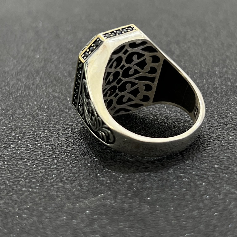 Inel BrooksModel:Barbat.Material: Argint 925.Decorat manual cu cristale de zirconiu negru.Circumferinta : 64 mm.Greutate: 15 grame.Model unic in Romania!Tabel dimensiuni