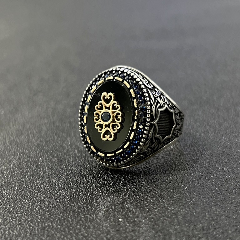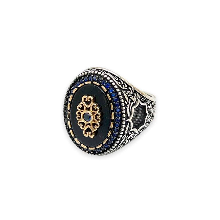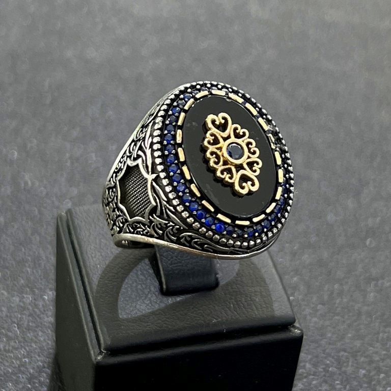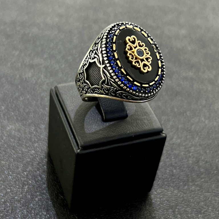 Inel BrooksModel:Barbat.Material: Argint 925.Decorat manual cu cristale de zirconiu albastru.Circumferinta : 67 mm.Greutate: 17 grame.Model unic in Romania!Tabel dimensiuni