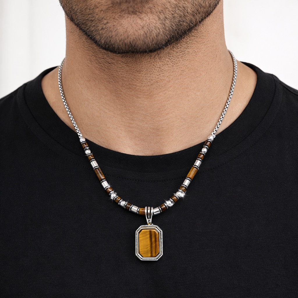 Lant:Otel inoxidabil+pietre naturale ochi de tigru