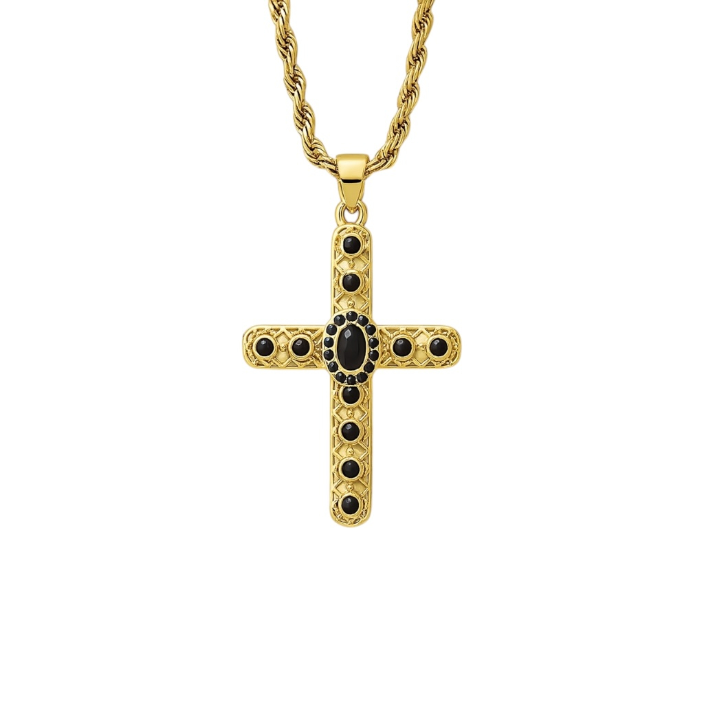 Cruciulita si lantul sunt decorate cu cristale de zirconiu.