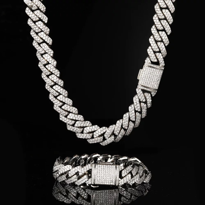 Set lant si bratara Brooks CubanMateriale folosite lant: -Aliaj cupru cu otel -Cristale de zirconiuLantul este placat printr-un procedeu riguros care confera bijuteriilor rezistenta in timp.Lungime lant: 50 cm.Lungime bratara: 20 cm.Latime zale : 12 mm.Constructia zalelor este una ergonomica pentru gat.Setul vine insotit de cutie Premium Brooks.