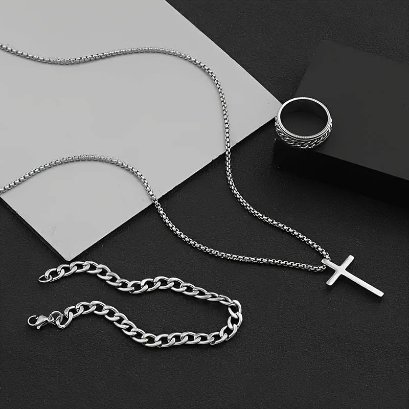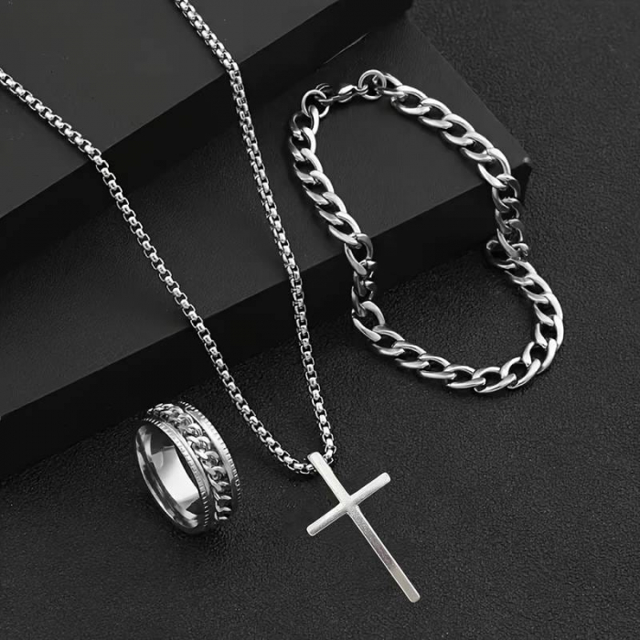 Set format din lant cu cruciulita,inel si bratara Cuban